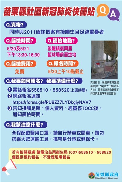 苗栗縣設後龍篩檢站籲與確診足跡重疊者篩檢 生活 中央社cna