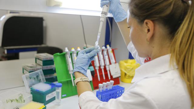 Peneliti beraktivitas di ruang riset vaksin Merah Putih di kantor Bio Farma Bandung Jawa Barat Rabu.